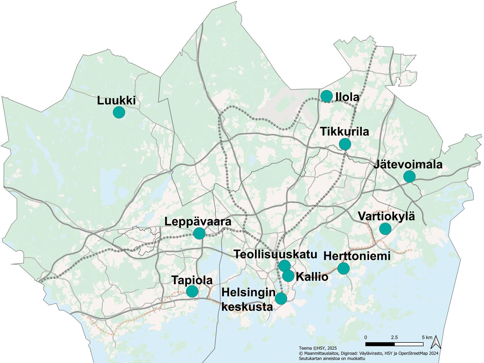 Herttoniemen ja Tapiolan mittausasemat sijaitsevat vilkasliikenteisten katujen varsilla. Mittauksilla selvitetään, millaisille pitoisuuksille ihmiset altistuvat liikkuessaan vilkasliikenteisissä ympäristöissä.