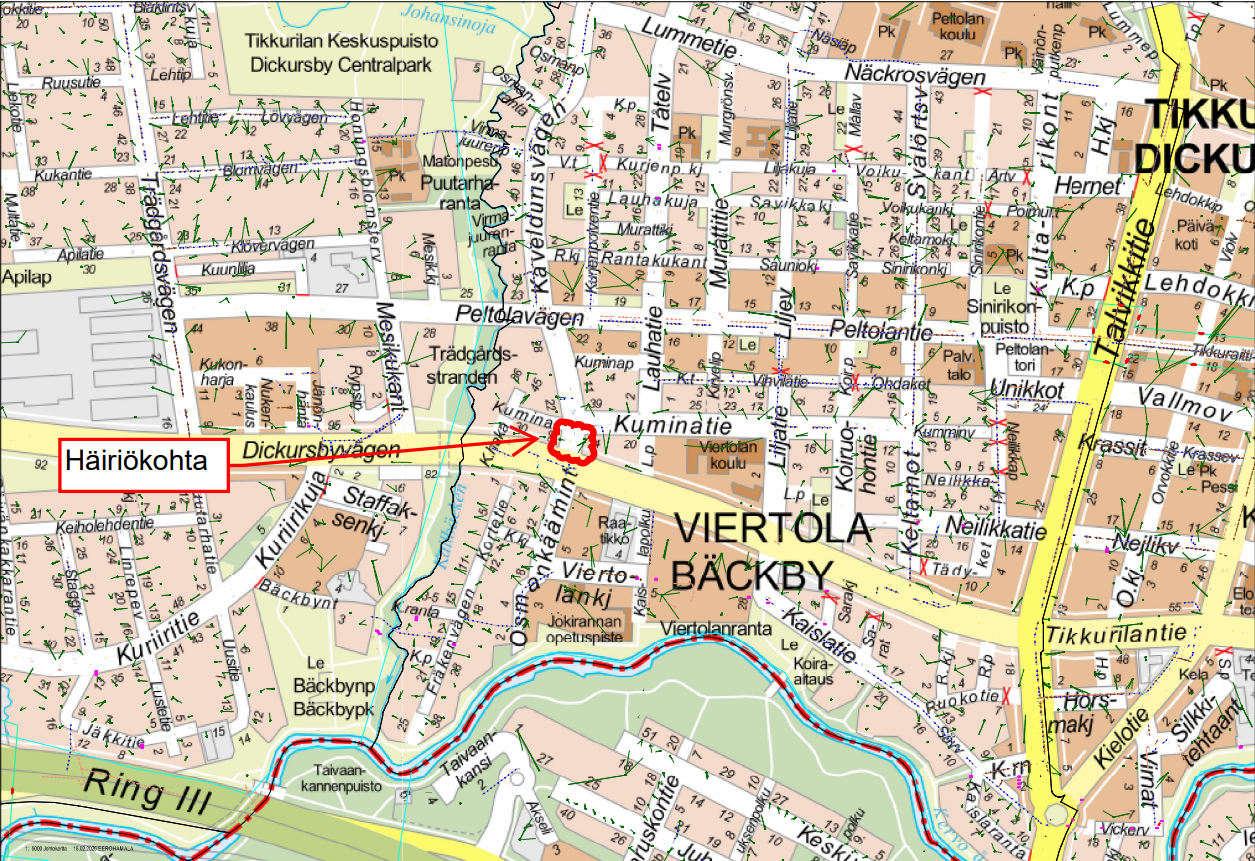 Vantaan ratikan työmaalla Tikkurilassa on tapahtunut putkirikko keskiviikkona 18.2.2026 noin klo 15. Tarkempi sijainti on Osmankäämintiellä välillä Kuminatie–Tikkurilantie. Kyseessä on halkaisijaltaan 500 mm jätevesiviemäri. HSY ja urakoitsija ovat aloittaneet korjaustyöt.