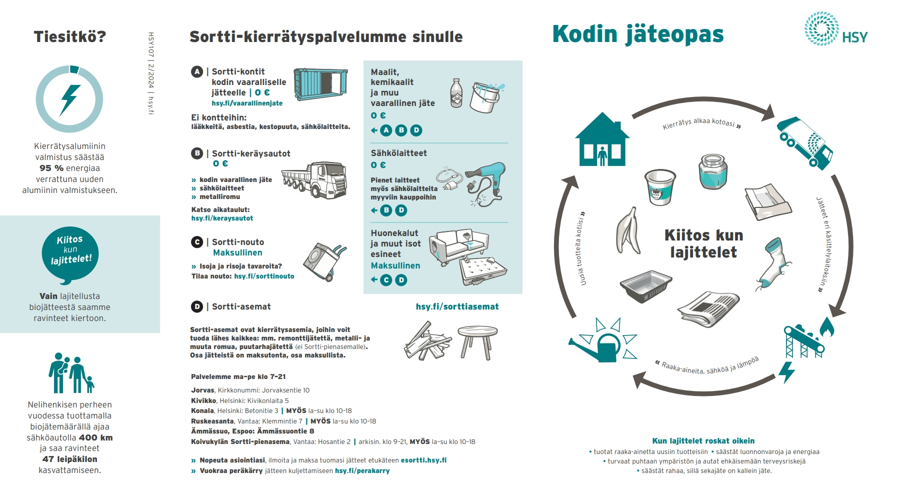 Lajitteluohjeet eli Kodin jäteoppaan voivat tilata pääkaupunkiseudun ja Kirkkonummen asukkaat. Tilaaminen on maksutonta alueen asukkaille. Oppaan voi myös tallentaa itselleen pdf-tiedostona.